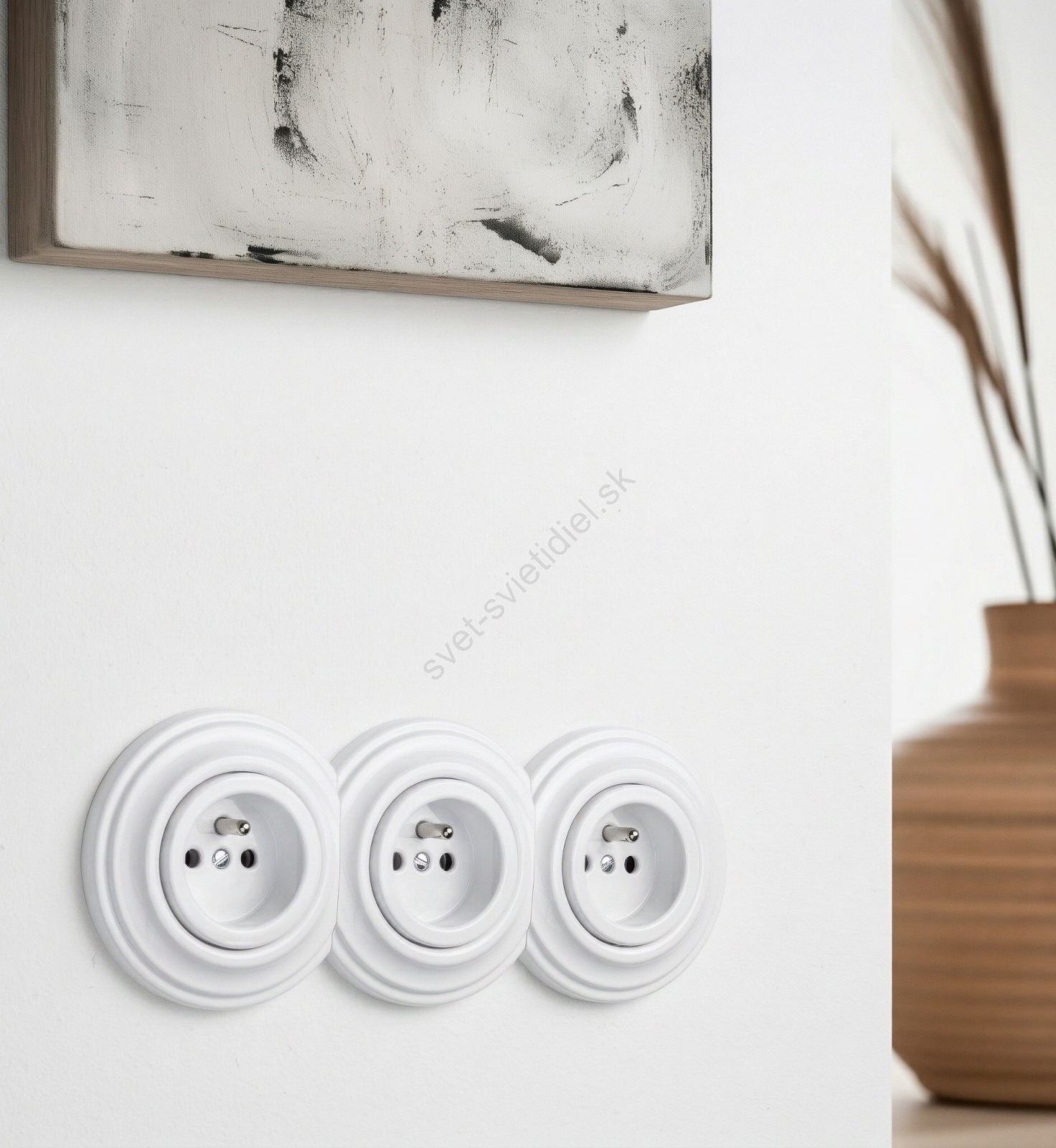• Kliklap - Trojitá retro domová zásuvka s rámčekom 230V keramická biela