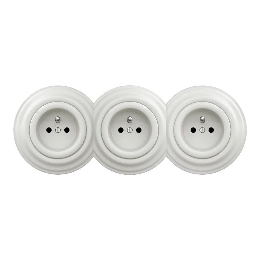 Kliklap - Trojitá retro domová zásuvka s rámčekom 230V biela
