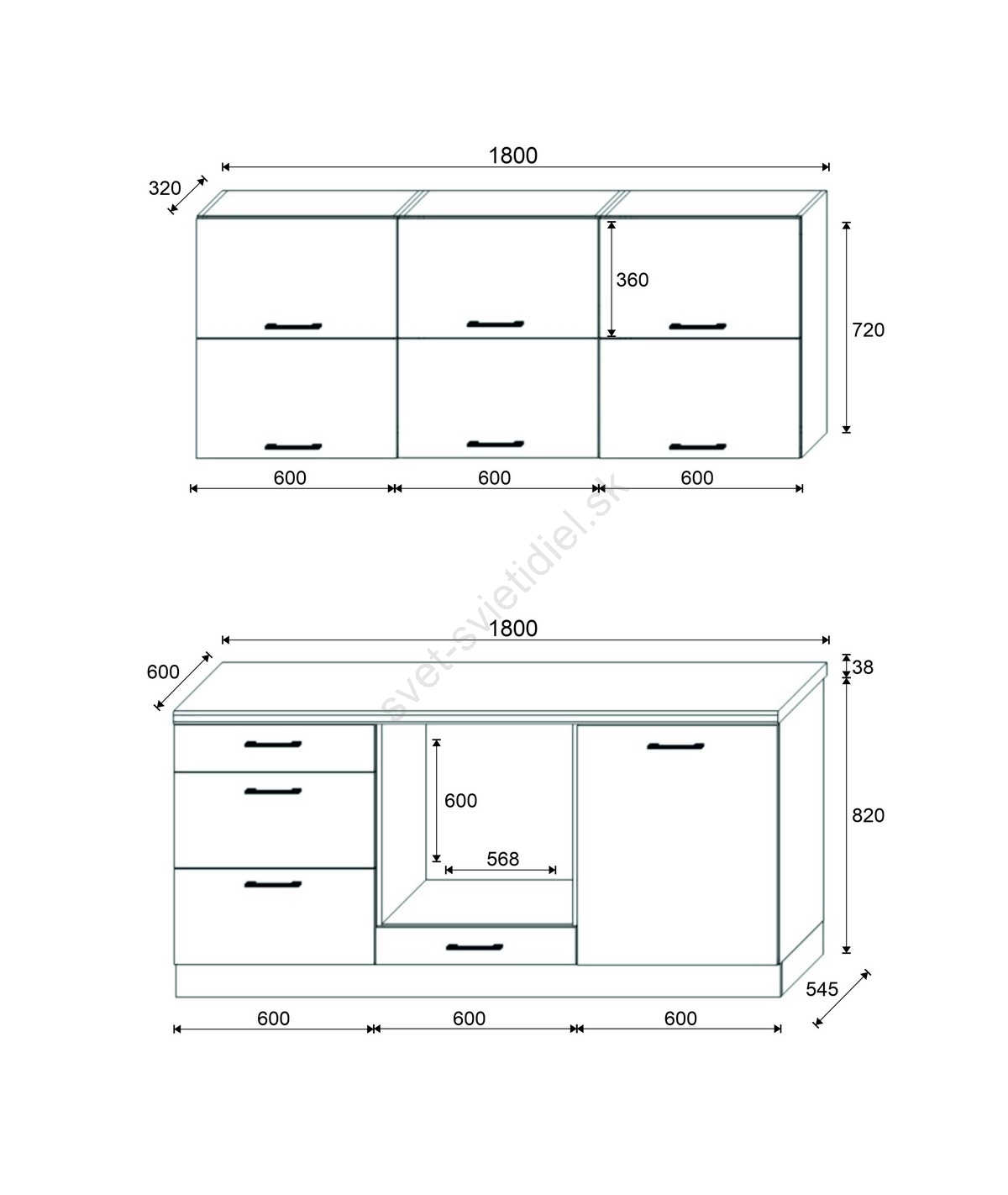 • Usporiadanie skriniek je modulárne, kuchyňu si môžete upraviť podľa vlastných predstáv.