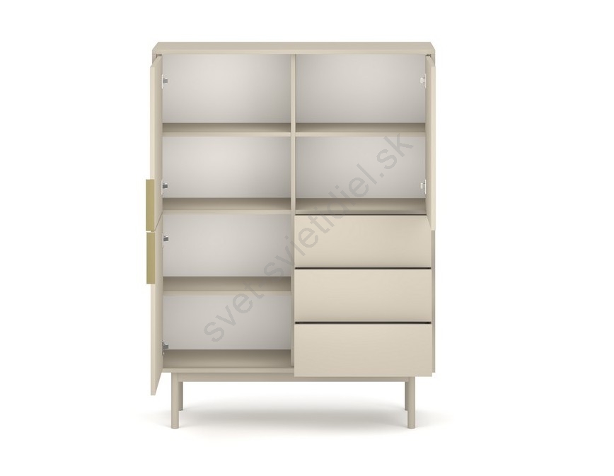 • Má dve dvierka na ľavej strane; na pravej strane sú dvierka a tri zásuvky pre prehľadné uloženie vecí.
