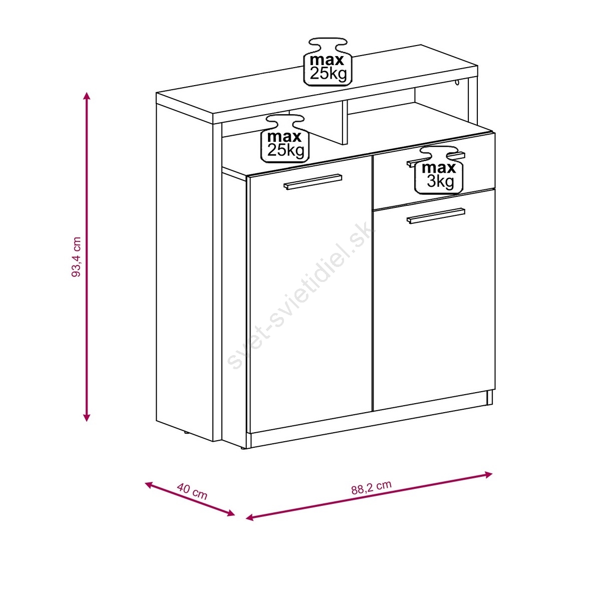 • Horná doska je dostatočne priestranná pre uloženie dekorácií, elektroniky alebo ďalších nevyhnutností.