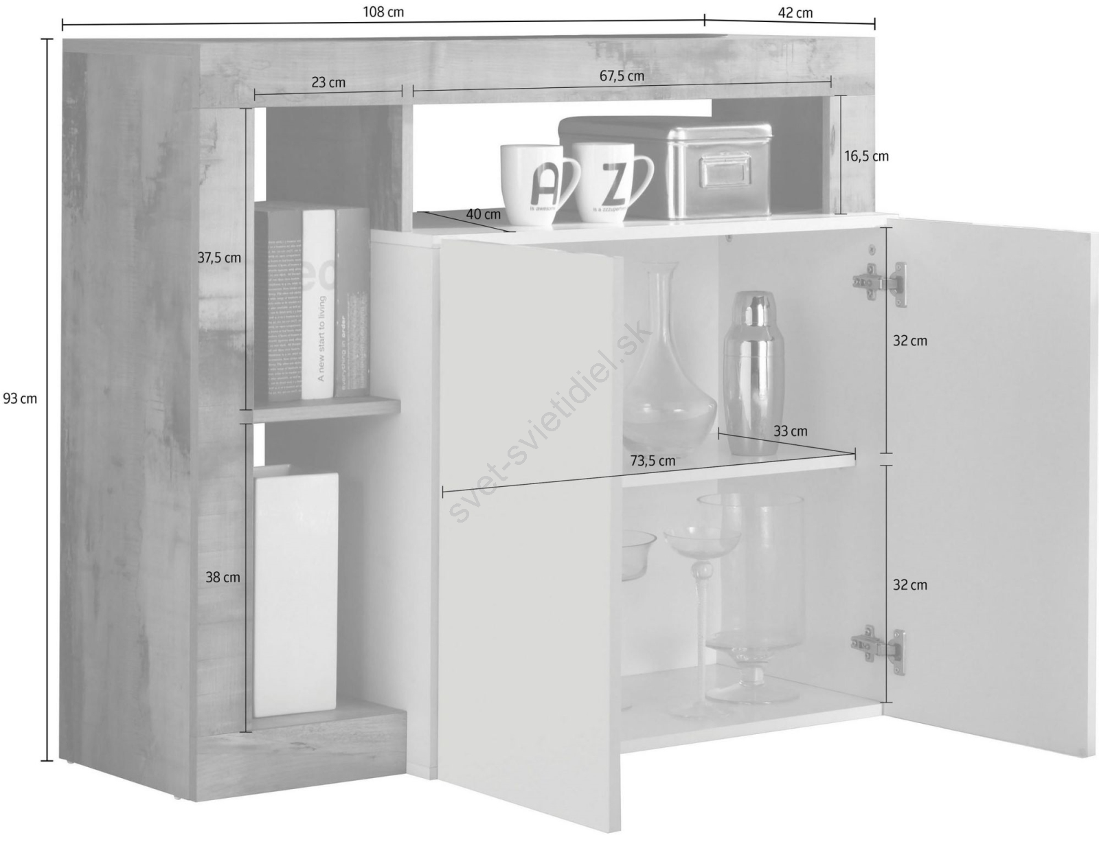 • Vďaka skrinkám poskytuje veľkorysý úložný priestor na usporiadanie vecí dennej potreby.