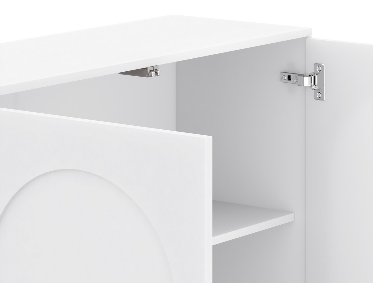 • Má dve dvierka, z ktorých každé je zdobené jemným oblúkovým vzorom pre rafinovaný vizuálny efekt.