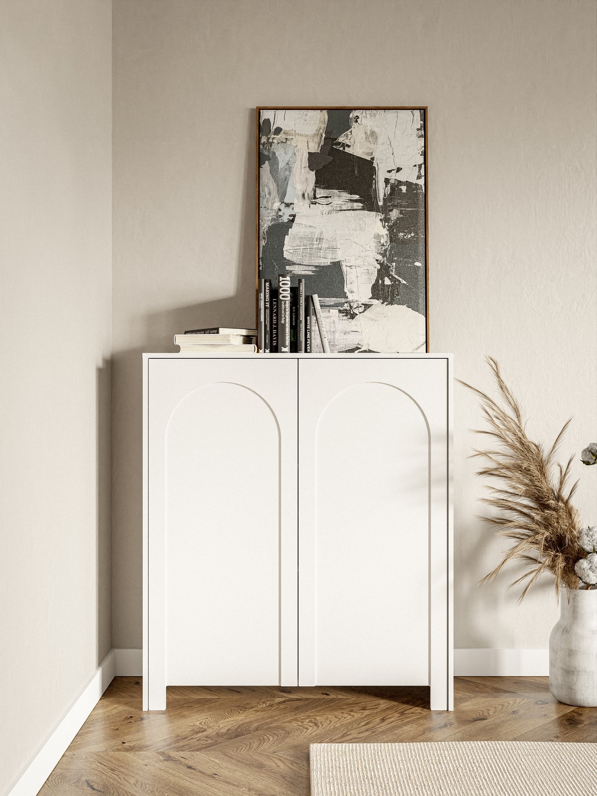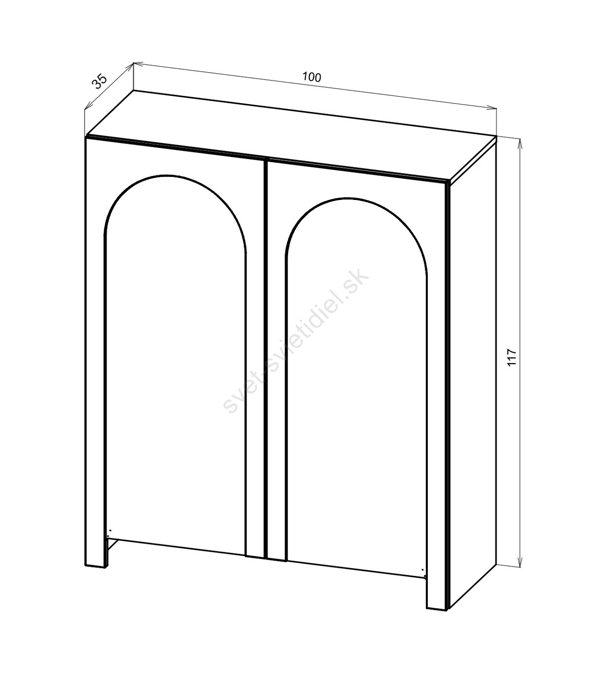 • Má dve dvierka, z ktorých každé je zdobené jemným oblúkovým vzorom pre rafinovaný vizuálny efekt.