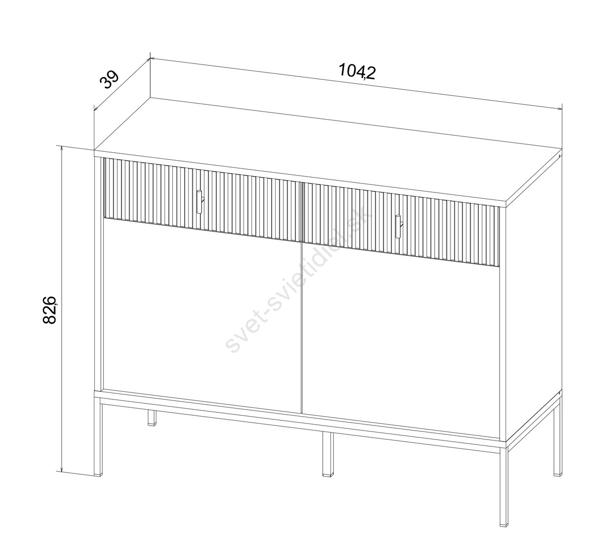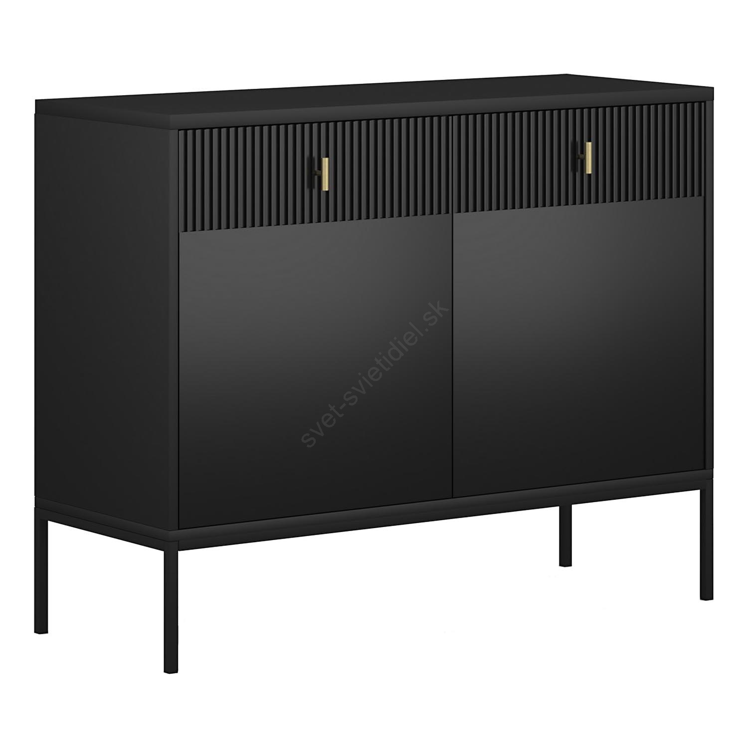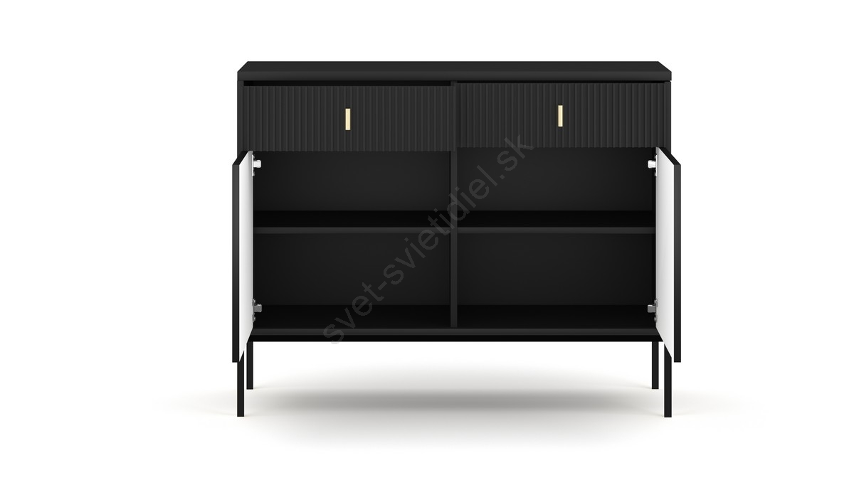 • Má dve spodné dvierka s veľkým úložným priestorom a dve zásuvky s úchytkami a vertikálnym rebrovaním.