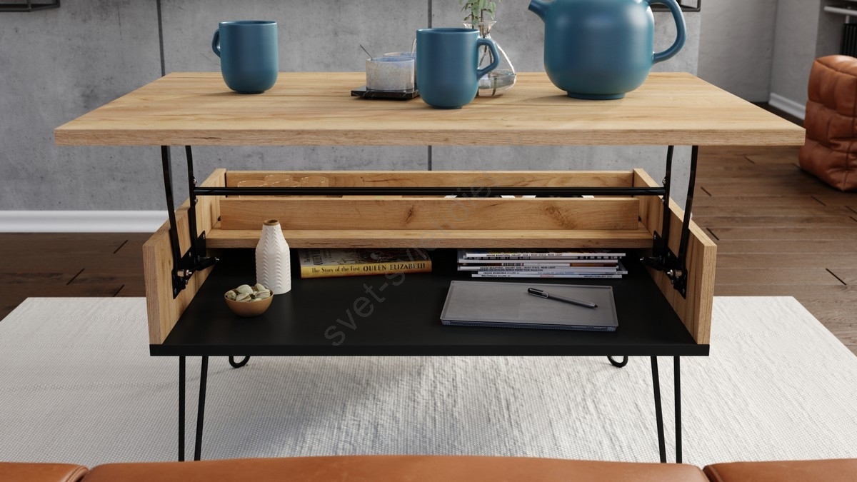 • Konferenčný stôl so zdvíhacou doskou a policou HALIJA dub craft/čierna
