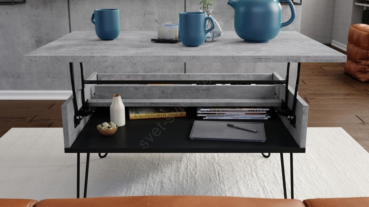 Konferenčný stôl so zdvíhacou doskou a policou HALIJA sivý betón/čierna