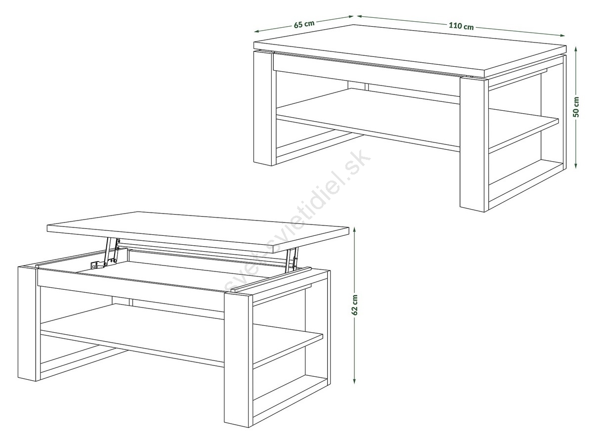 • Konferenčný stolík so zdvíhacou doskou a policou NEA dub craft/čierna