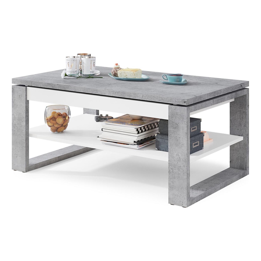 • Konferenčný stôl so zdvíhacou doskou a policou NEA šedý betón/biela