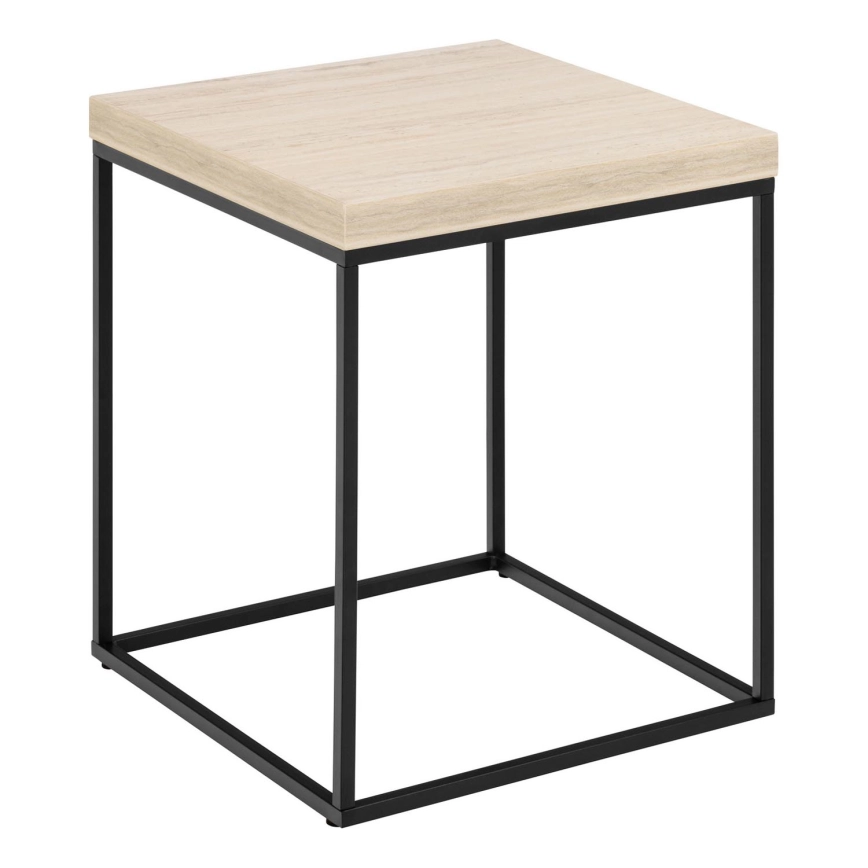 • Doska z travertínu, hrubý melamín, podstava z matnej čiernej, hrubej, práškovo lakovanej ocele.