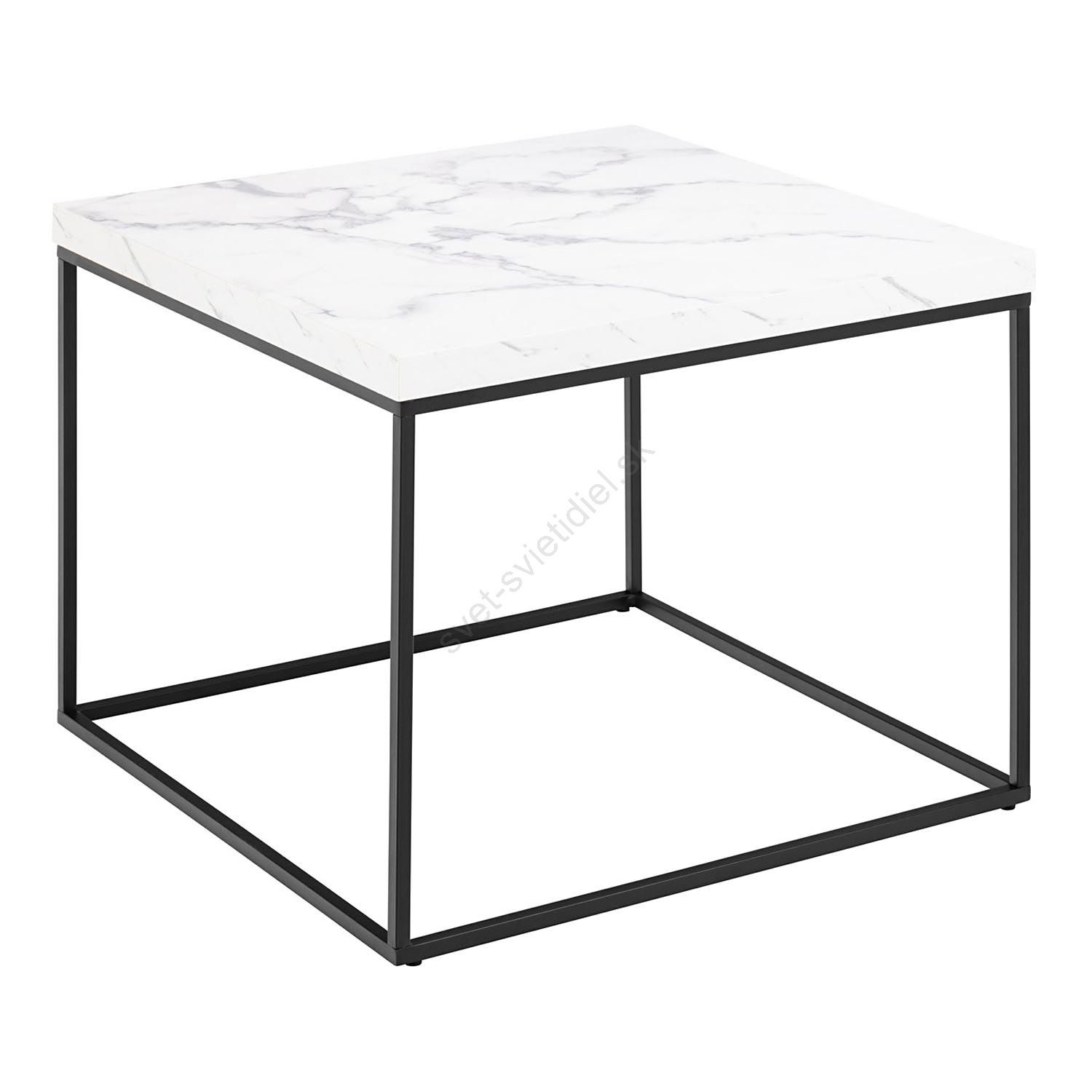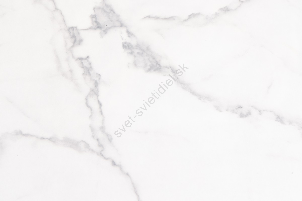 • Stolová doska: biely mramor Carrara, hrubý melamín; základňa: matná čierna, hrubá práškovo lakovaná oceľ.
