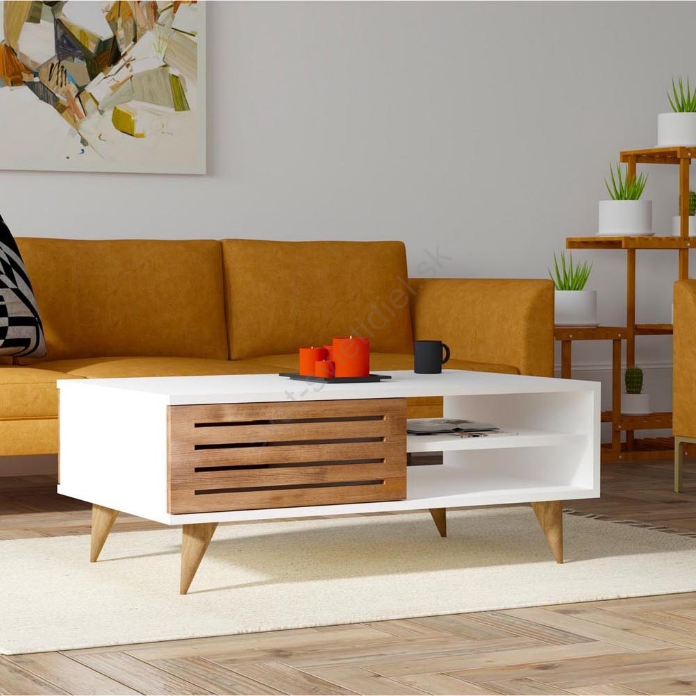 Konferenčný stolík GRANDE 42x100 cm biela/hnedá