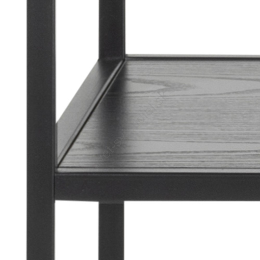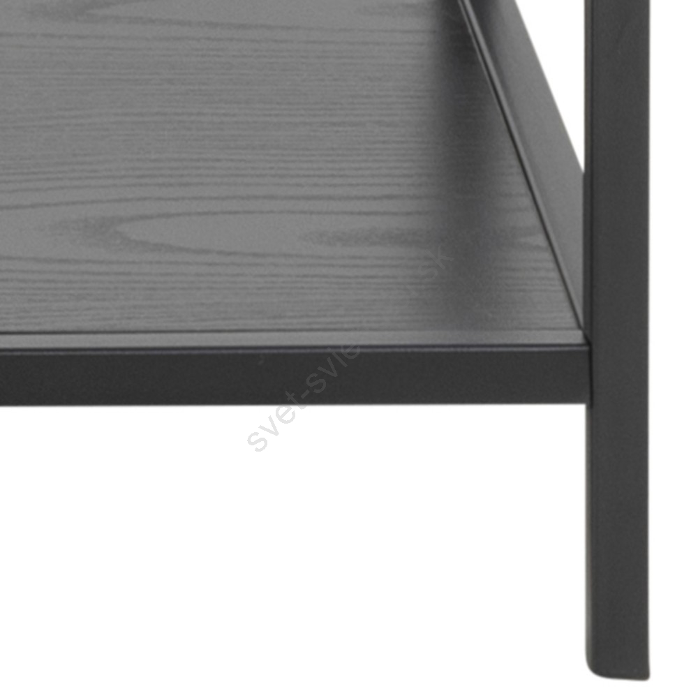 • Vrchná doska a 2 police z čierneho hrubého melamínu, podnož z matnej čiernej hrubej práškovo lakovanej ocele.