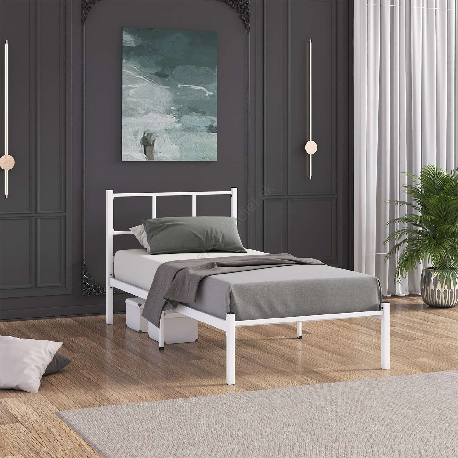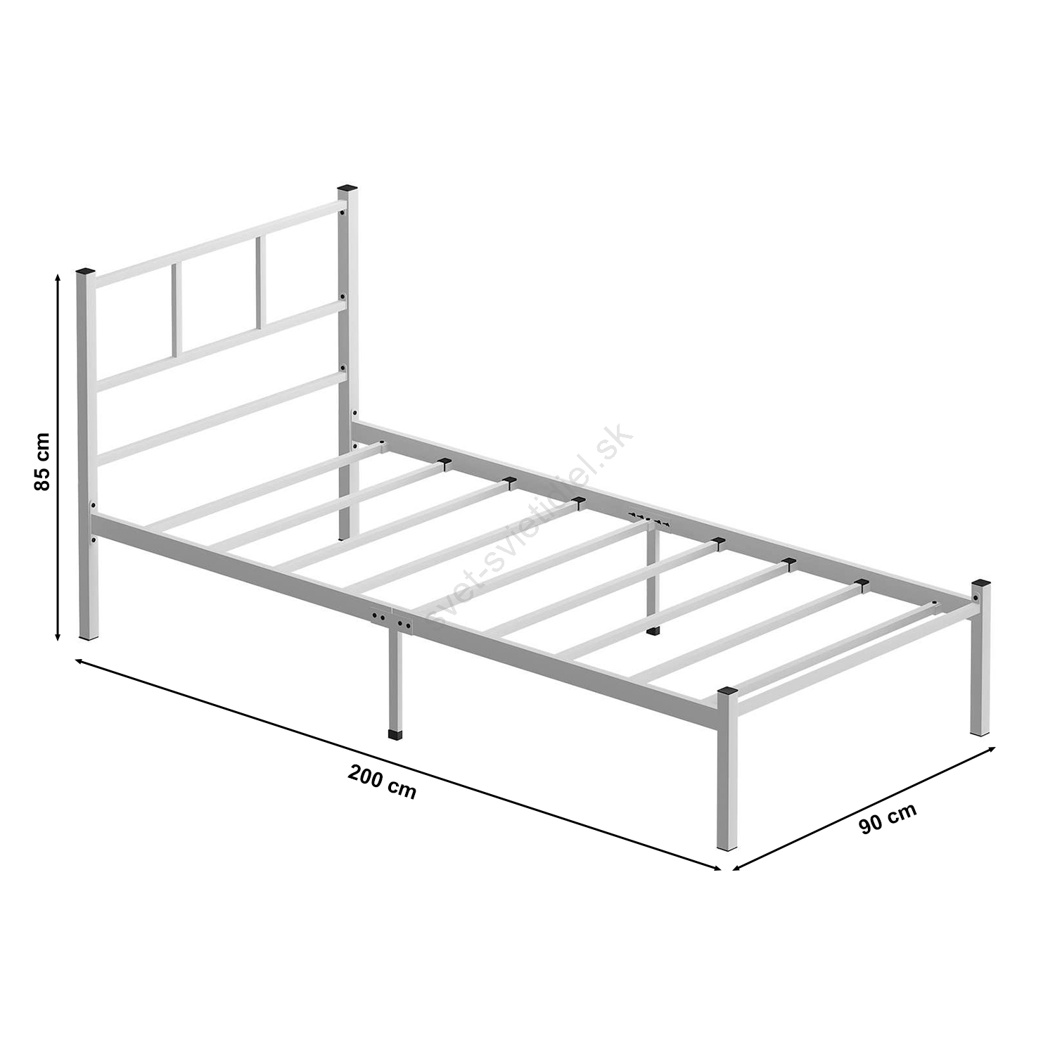 • Kovová jednolôžková posteľ ROVAN 90x200 cm biela nosnosť 120 kg