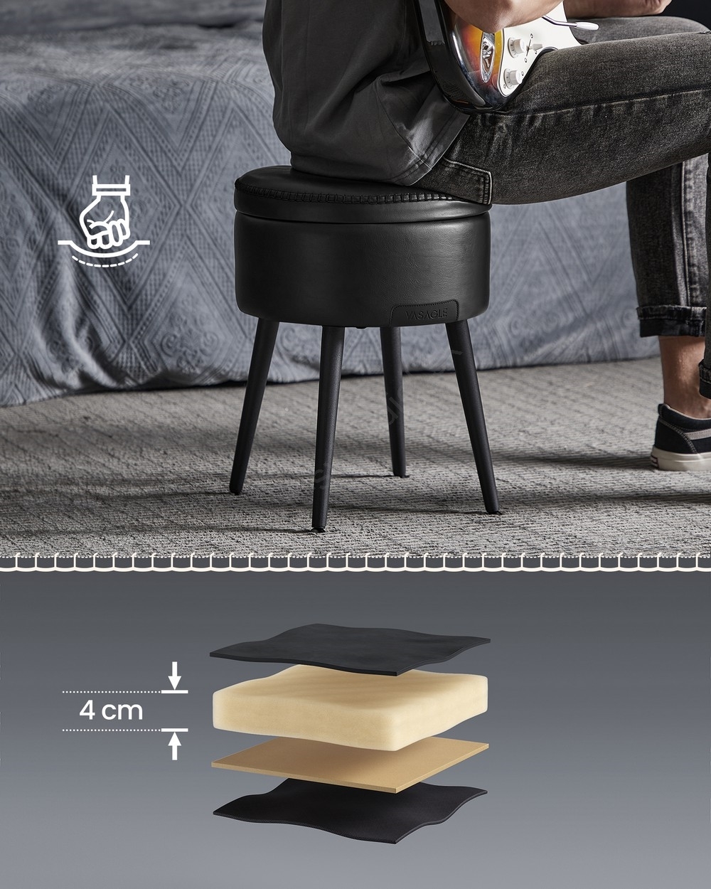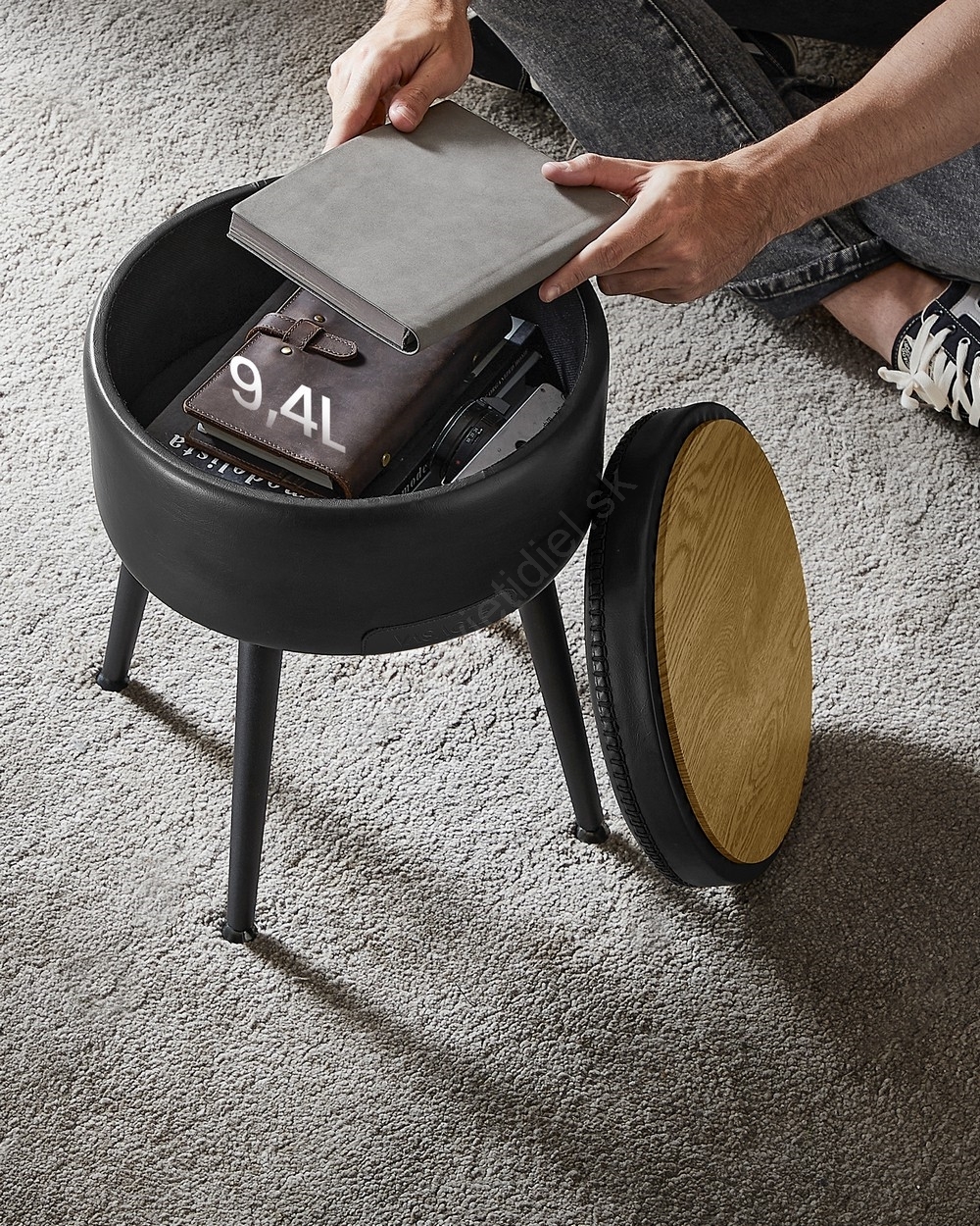 • Vo vnútri taburetu je priestor (9,4 l) na ukrytie elektroniky, kníh, prikrývok a ďalších drobností.