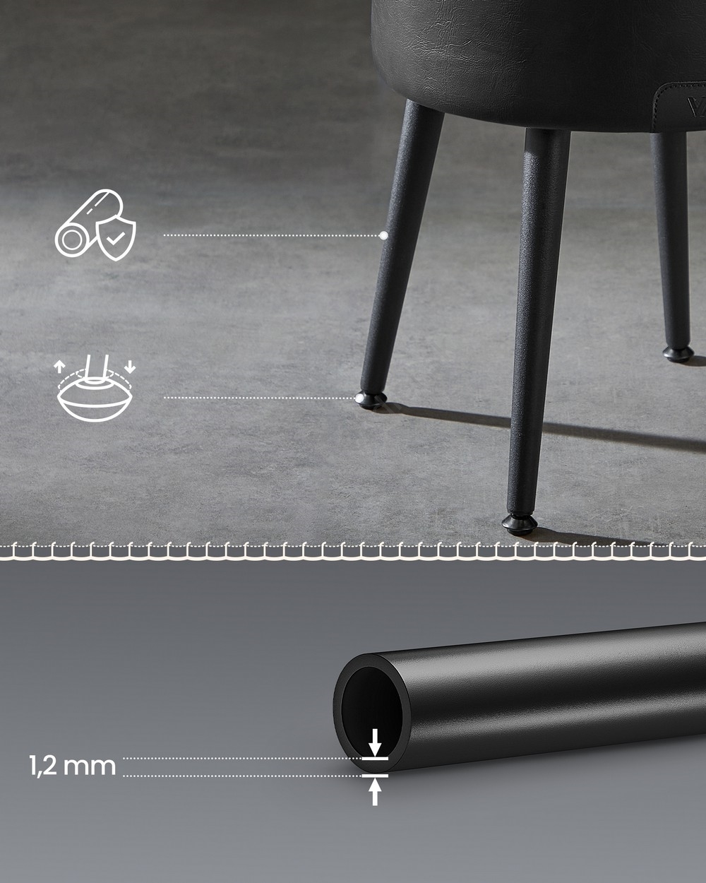 • Elegantné oceľové nohy s nastaviteľnými kĺbovými nožičkami dodávajú moderný vzhľad, unesú až 150 kg a zároveň zaručujú stabilitu a dlhú životnosť.