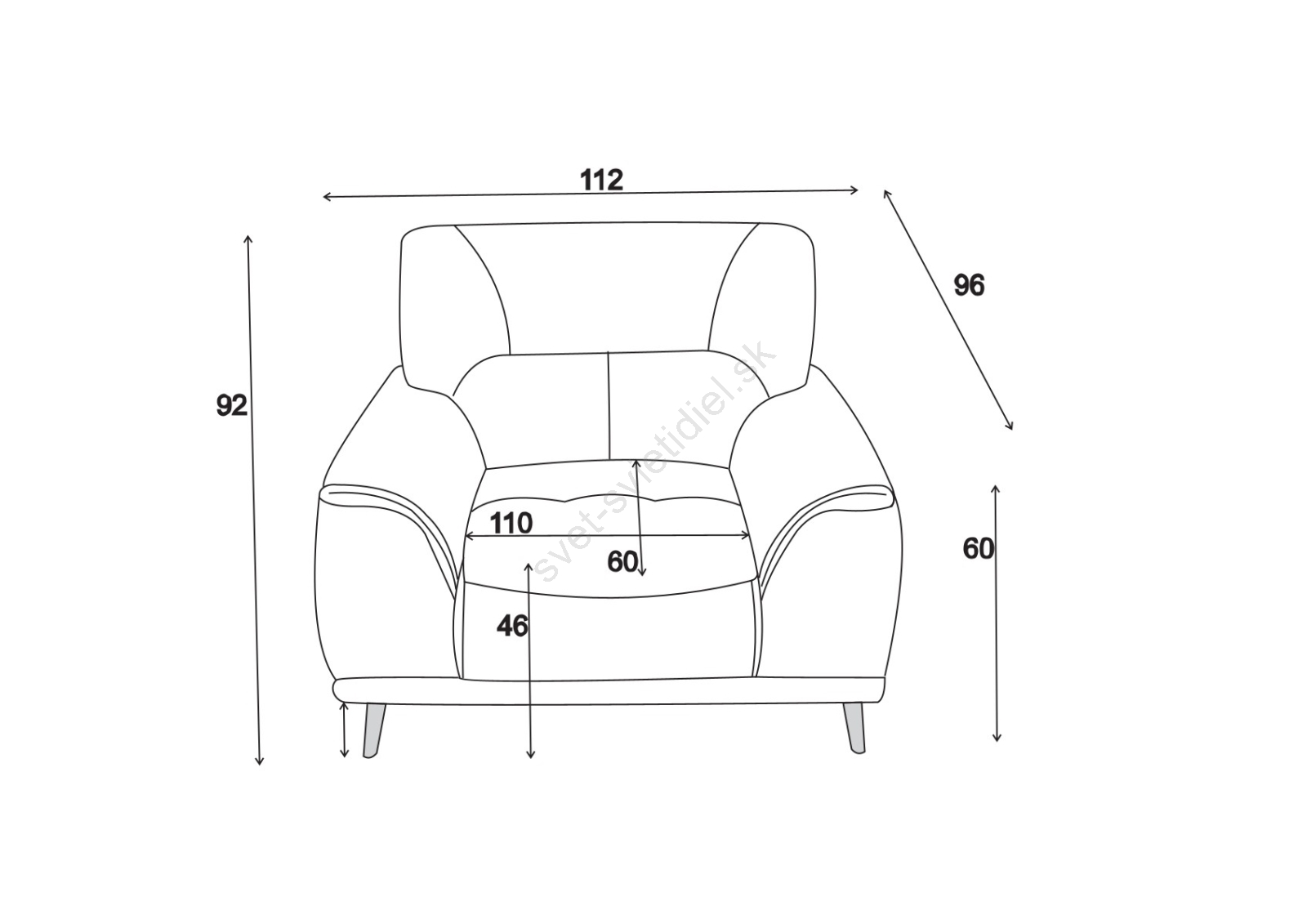 • S výškou 92 cm, pohodlnou výškou sedadla 46 cm a hĺbkou 60 cm zabezpečuje ergonomické a relaxačné sedenie.
