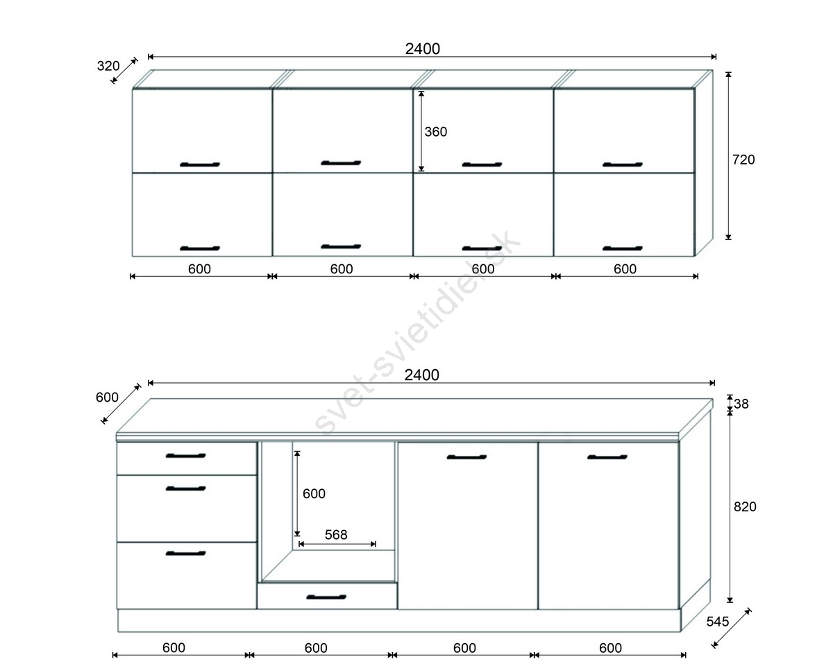 • Usporiadanie skriniek je modulárne, kuchyňu si môžete upraviť podľa vlastných predstáv.