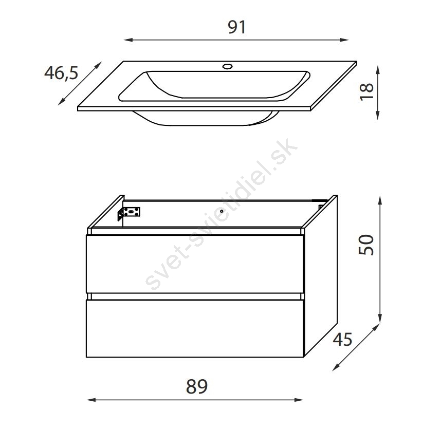 • Súčasťou tejto skrinky je keramické umývadlo.