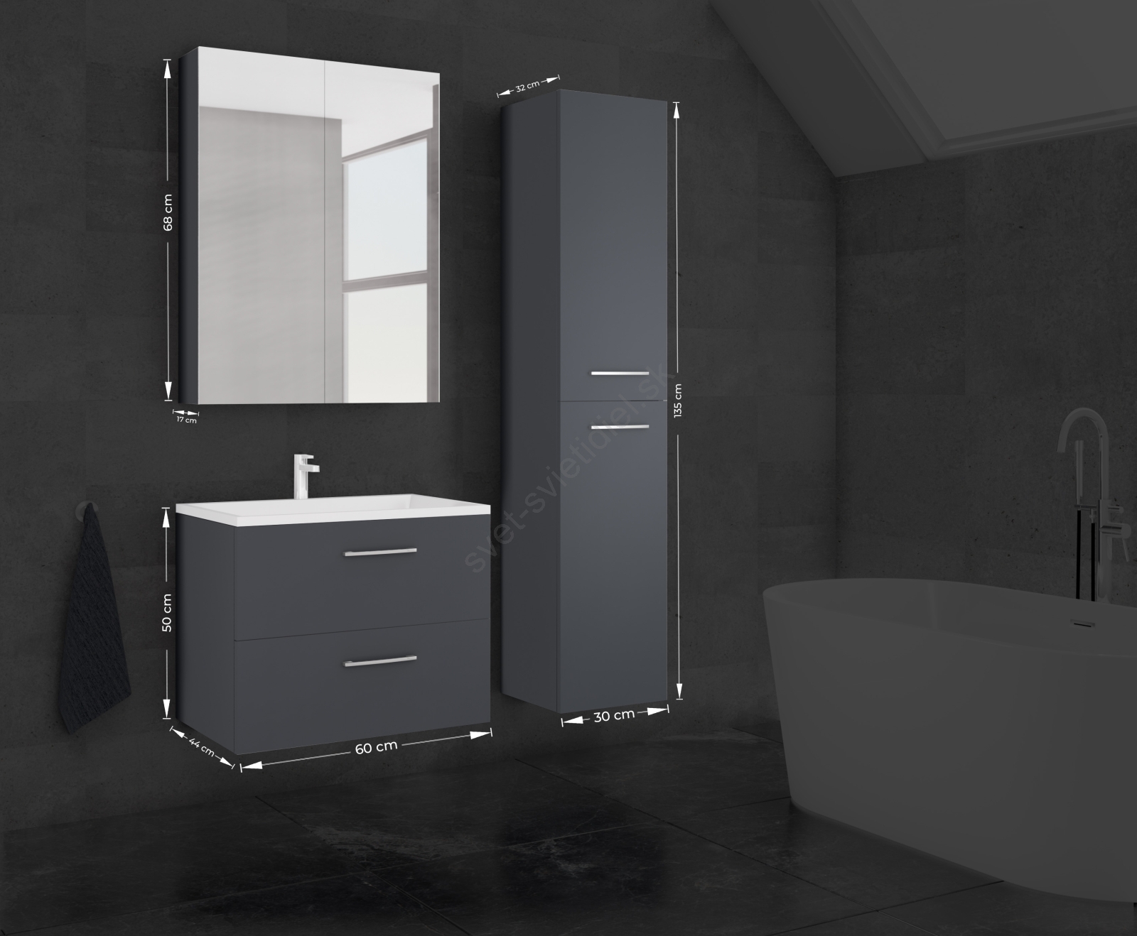 • Kúpeľňová skrinka s umývadlom KATE + zrkadlová skrinka + nástenná skrinka antracit