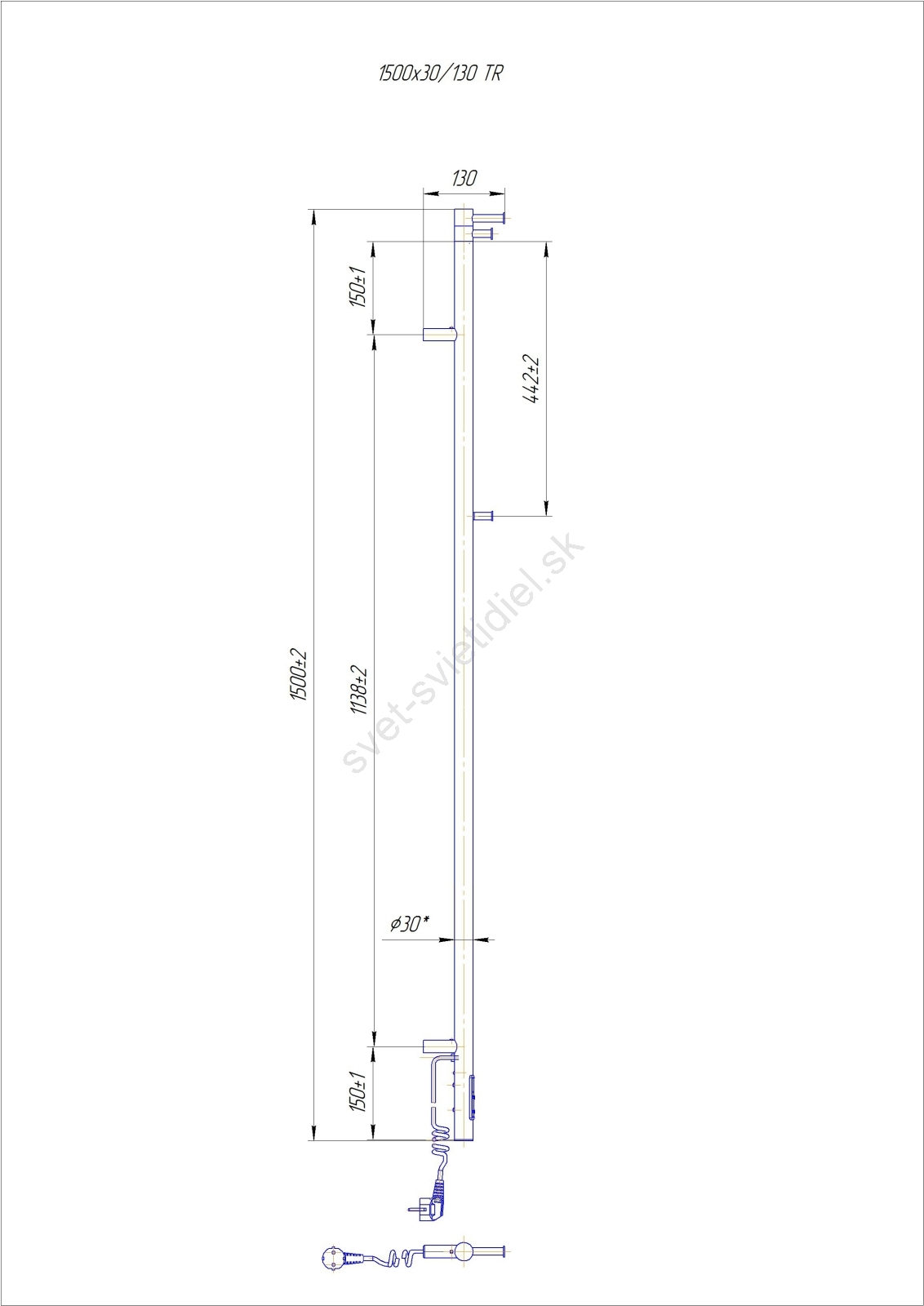 Kúpeľňový radiátor RAY 35W/230V 150x30 cm IP44 nerez/biela