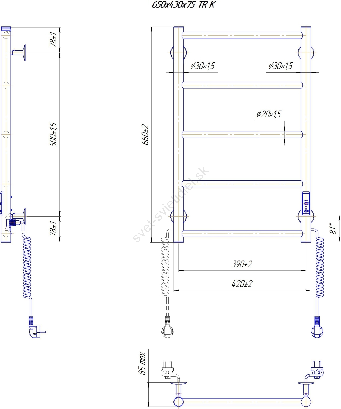 Kúpeľňový rebríkový radiátor CLASSIC 65W/230V 65x43 cm nerez/lesklý chróm pravý