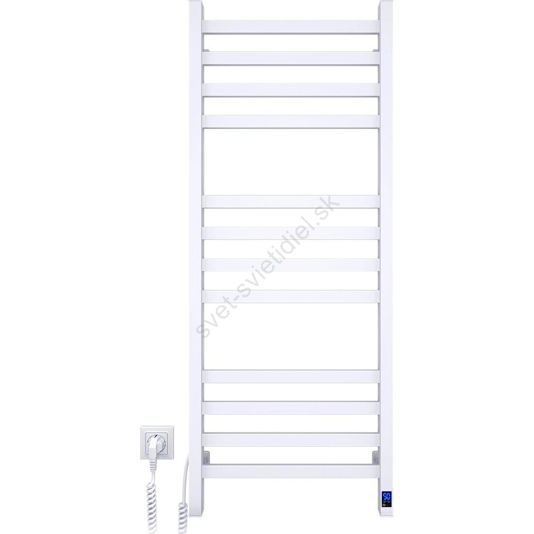 Kúpeľňový rebríkový radiátor s termostatom AVANGARD 227 W 120 × 48 cm biely, ľavý