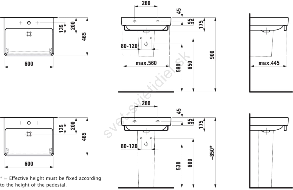 • Umývadlo je určené na inštaláciu na dosku alebo ako závesné umývadlo na stenu.