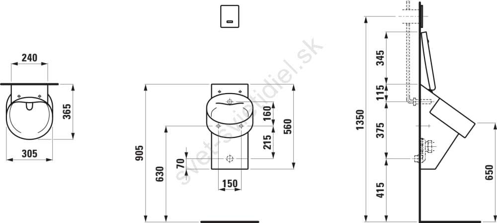 • Pisoár je vybavený montážnymi otvormi pre poklop (nie je súčasťou balenia).