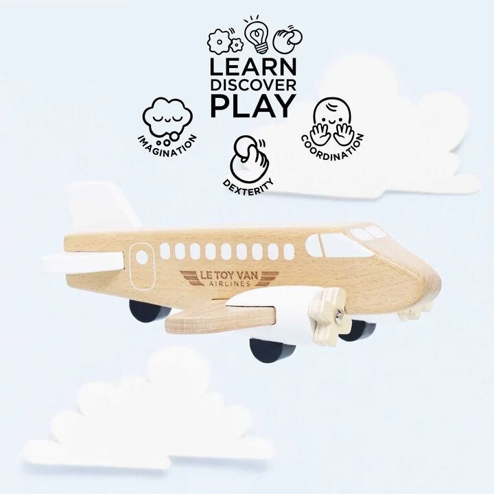 • Toto drevené lietadlo má pohyblivé časti a dizajn, ktorý podnecuje fantáziu.