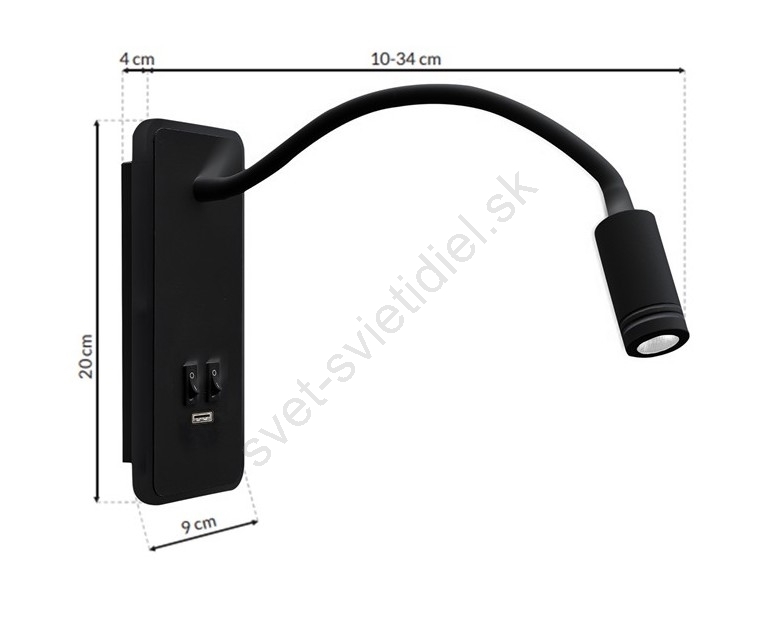 • LED flexibilná nástenná lampička s USB BASE LED/8W+LED/2W/230V čierna