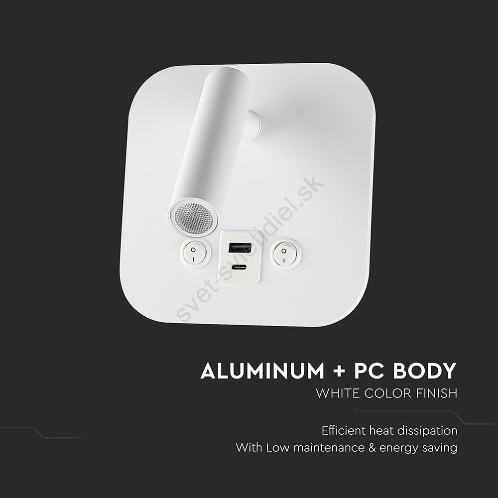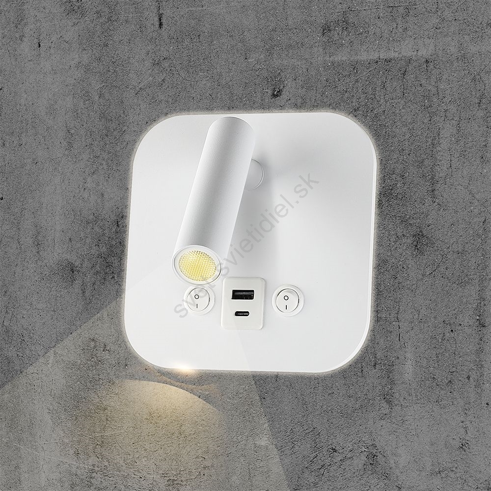 • LED nástenné bodové svietidlo s USB portom LED/8W/230V 3000K biela
