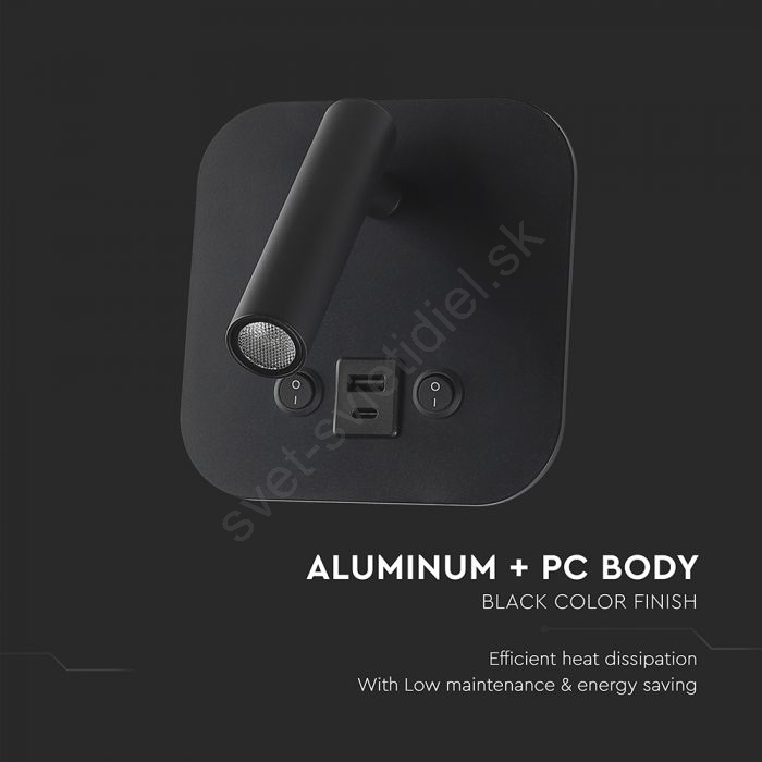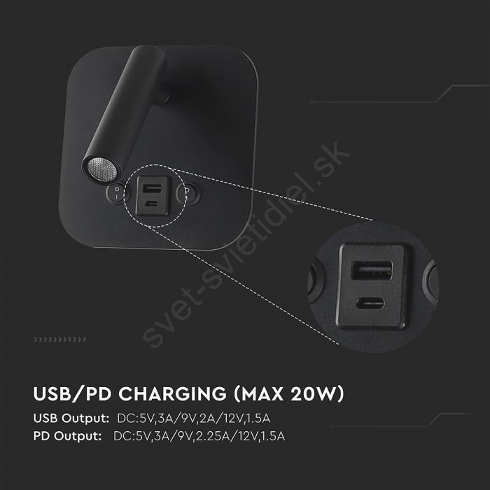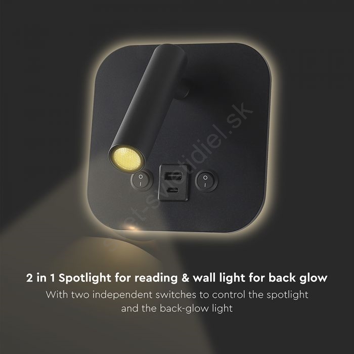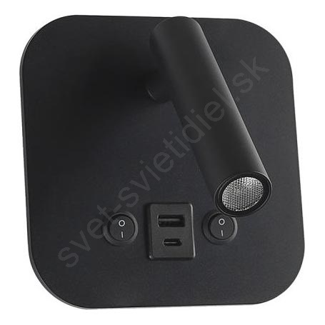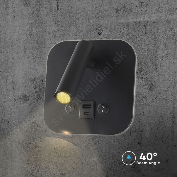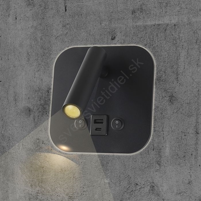 • LED nástenné bodové svietidlo s USB portom LED/8W/230V 3000K čierne