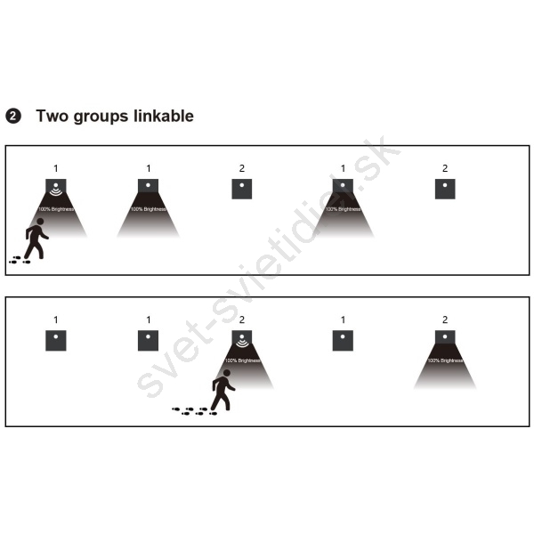• REŽIM 2 - spínanie skupiny svietidiel nastavených rovnakým režimom.
