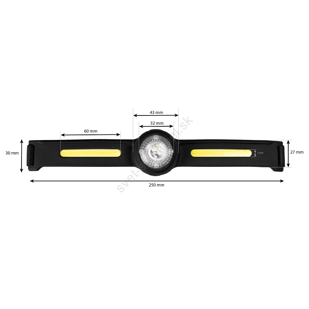 • Režimy: 10 % hlavné svetlo, 100 % hlavné svetlo, 100 % hlavné svetlo + 100 % bočné COB diódy, 100 % bočné COB diódy, 4 červené diódy, stroboskop.
