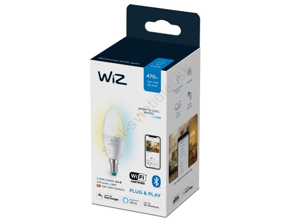 LED Stmievateľná žiarovka C37 E14/4,9W/230V 2700-6500K CRI 90 Wi-Fi - WiZ