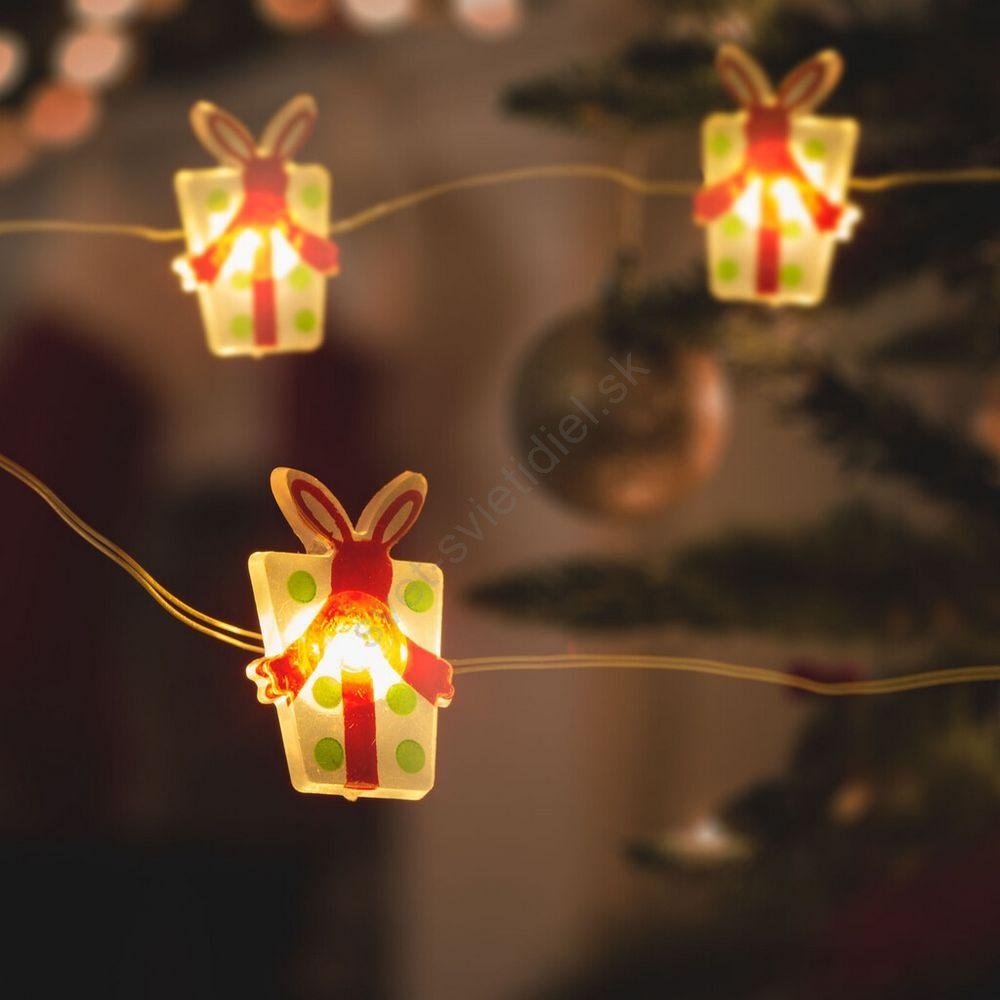 • Dekoračný LED reťaz so svetelnými bodmi v tvare vianočných darčekov.