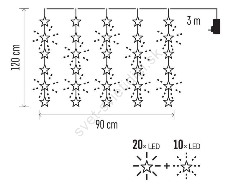 LED vonkajšia svetelná reťaz 30xLED/3,9m IP44 hviezdy