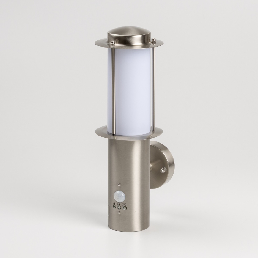 LED vonkajšie nástenné svietidlo s pohybovým senzorom 1xE27/4,9W/230V IP44 matný chróm