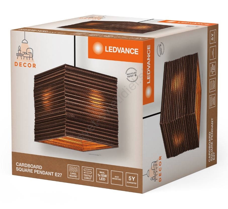Ledvance - Luster na lanku DECOR CARDBOARD 1xE27/15W/230V 25x25 cm charakterizuje pekný dizajn a funkčné prevedenie.  Do svietidla je určená žiarovka s päticou E27. Tu si môžete kúpiť ďalšie žiarovky za výhodnú cenu. Získate tak zaujímavý doplnok do svojho domova.