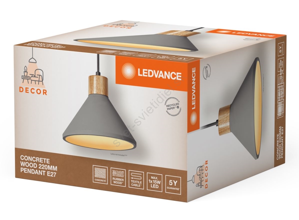 Ledvance - Luster na lanku DECOR CONCRETE 1xE27/15W/230V pr. 22 cm betón šedá