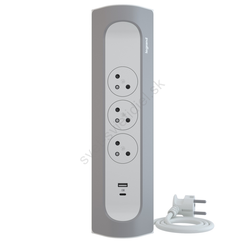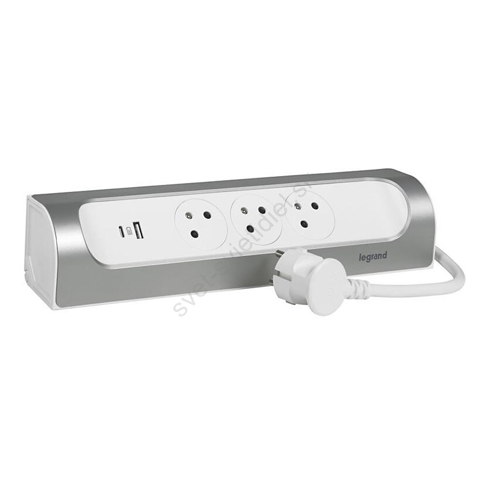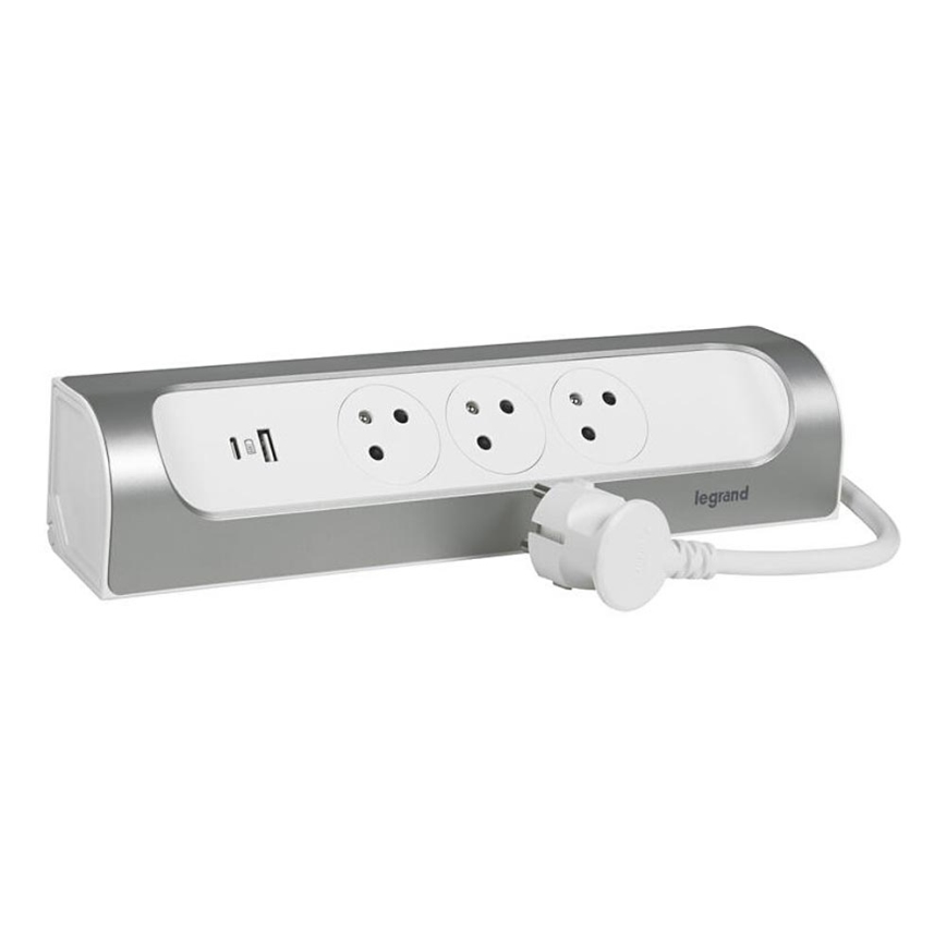 Legrand 049406 - 3-zásuvkový predlžovací kábel Typ E + USB-A + USB-C 1 m strieborný/biely