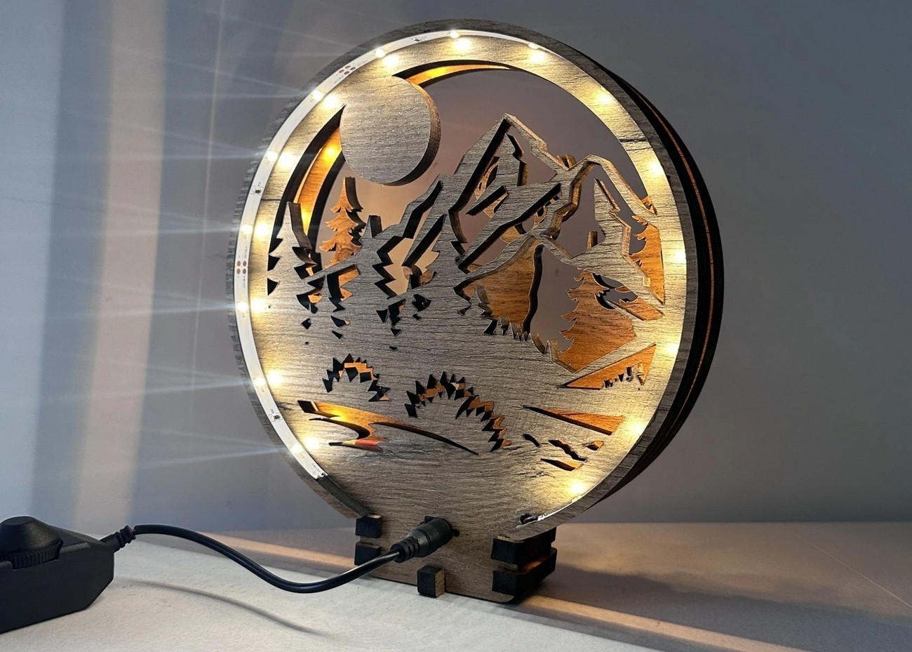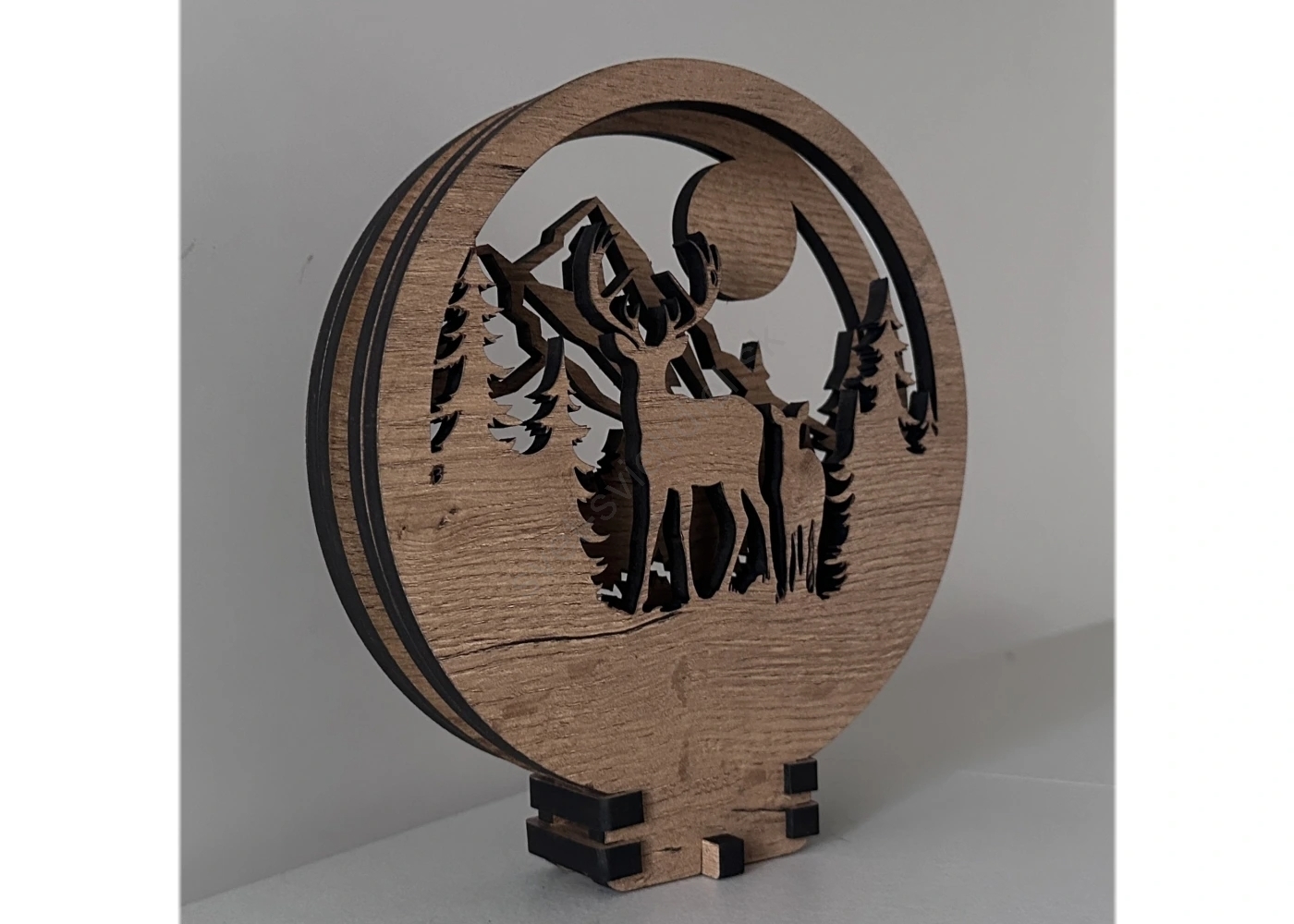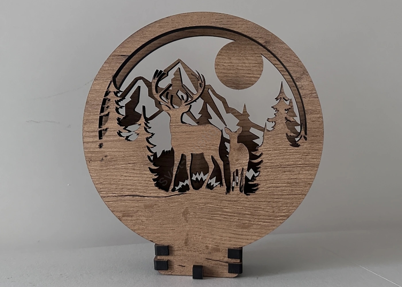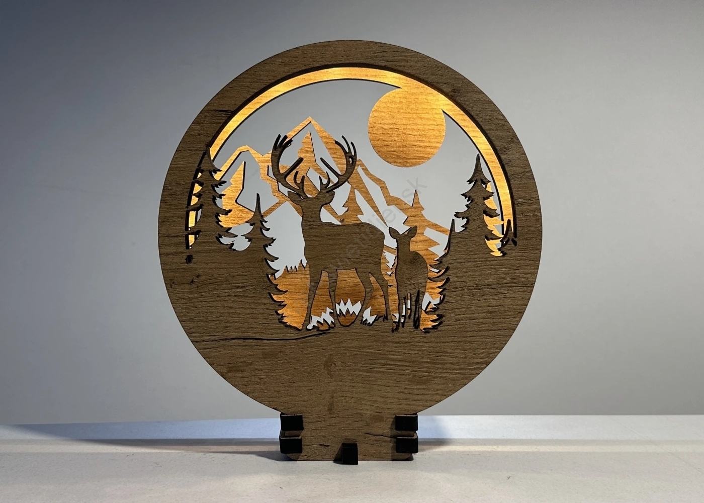 Li-Go 23592/DUB2 - LED Stmievateľná stolová dekorácia LED/12W/230V 20x22 cm dub/Jeleň a laň