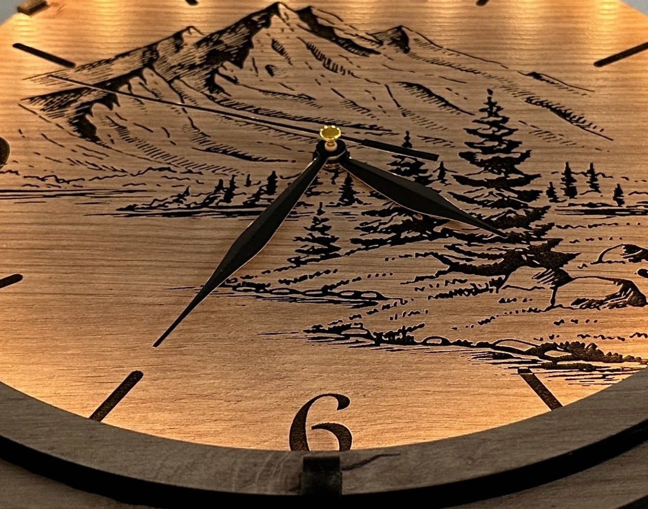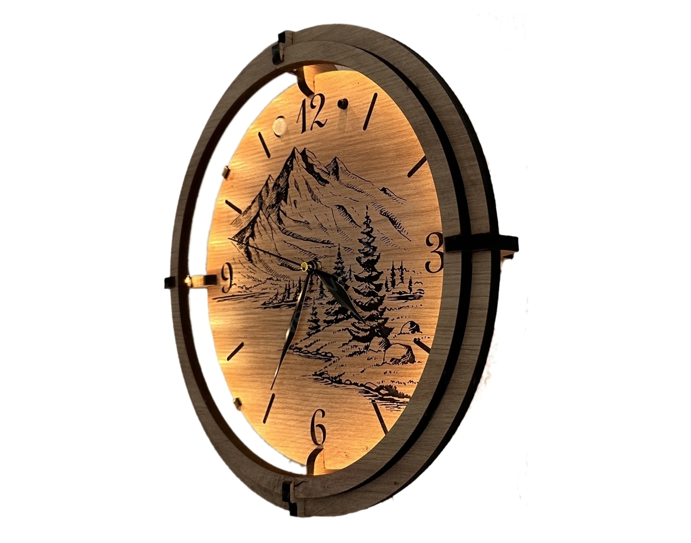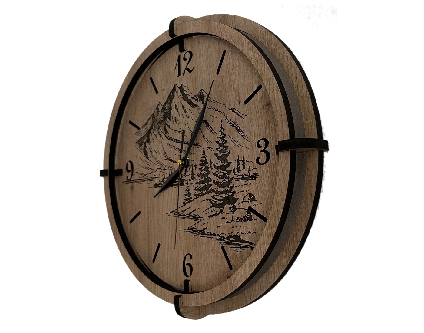 • Li-Go 23676/DUB5 - Drevené hodiny 1xAA pr. 32 cm dub/Hory