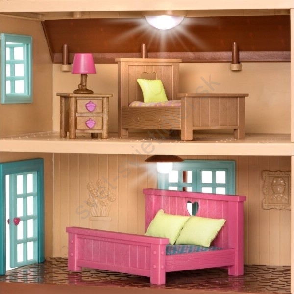 • Otvárací 3-poschodový domček ponúka nádherné bývanie postavičkám zvieratiek Li'l Woodzeez.