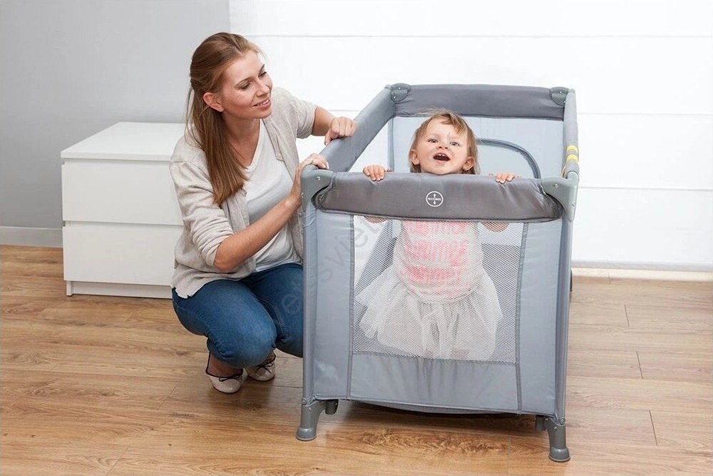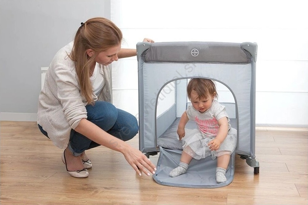 • Skladacia cestovná postieľka, ktorú možno použiť aj ako ohrádku.