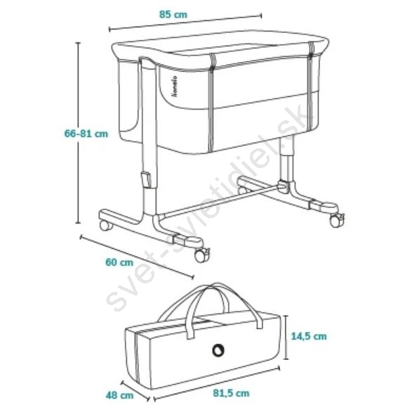 • Multifunkčná postieľka 3v1: voľne stojaca postieľka, bočný lôžko a kolíska.