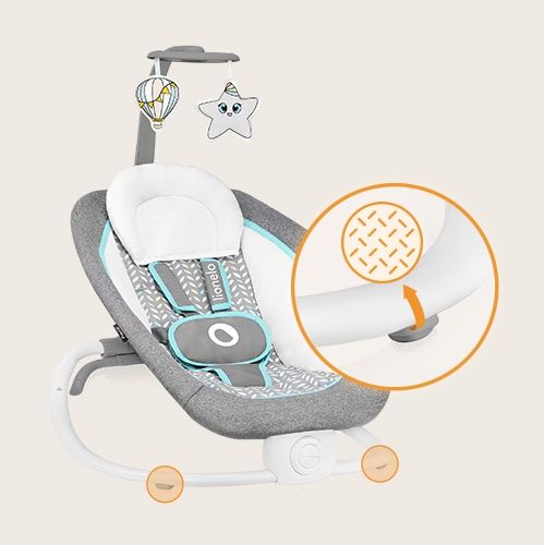 • Húpacie lehátko obsahuje odnímateľnú hrazdičku so závesnou hračkou, ktorá poskytuje zábavu počas hrania.