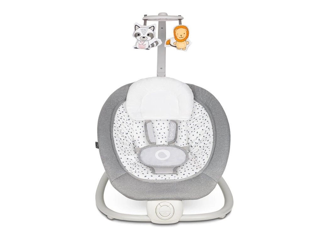 Lionelo - Detské vibrujúce hojdacie lehátko s melódiou PASCAL 2xAA sivé