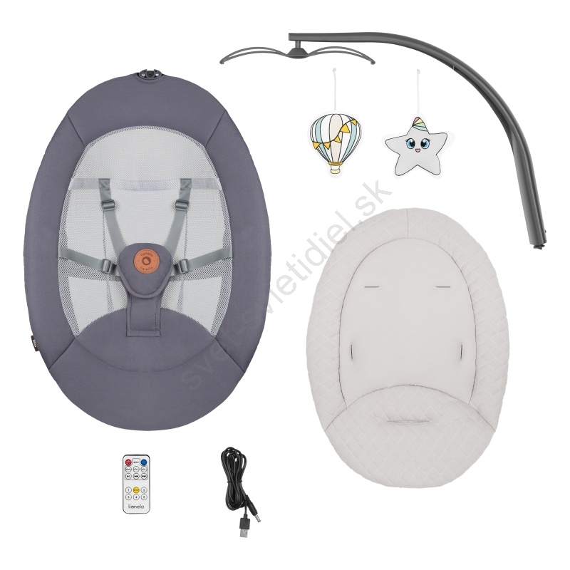 Lionelo - Detská hojdačka s melódiou RINA 4xAA Grey Concrete + diaľkové ovládanie